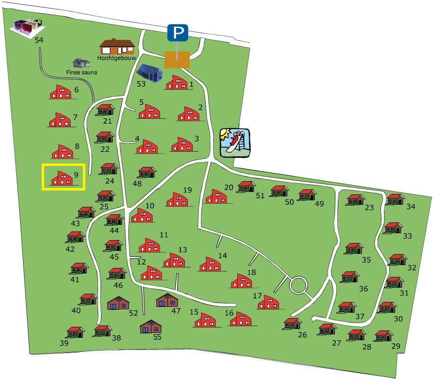 Het huis heeft nummer 9 op Bungalowpark Lanka en is gelegen aan de west-rand van het park.